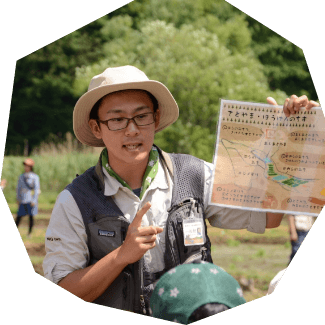 大分県生まれの東京都小平市育ち。東京環境工科専門学校卒。子どもの頃からキャンプ好きだった他、放課後はカタツムリ採りに明け暮れた。現在は狭山丘陵の都立公園を中心に、子どもから大人まで楽しめる自然体験プログラムを運営。キッズレンジャーや近隣小学校の生徒たちと一緒に、雑木林や湿地などの里山保全活動にも力を入れている。